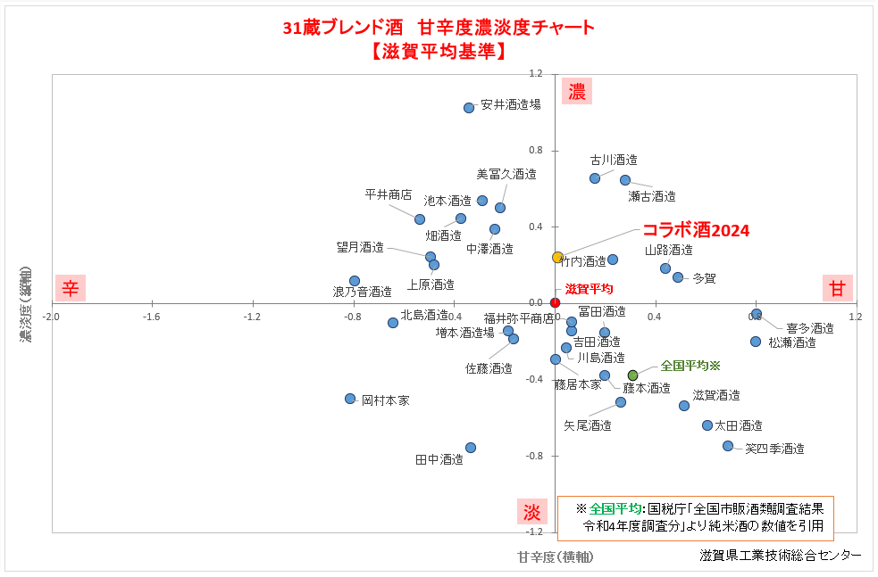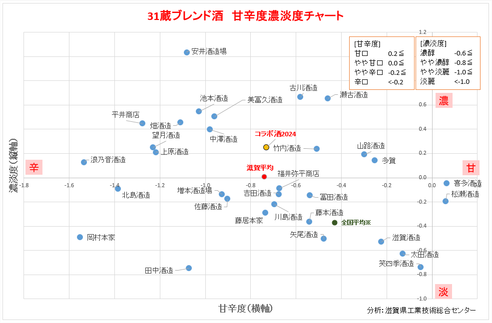 ブレンドに使用した滋賀酒の甘辛濃淡度チャート